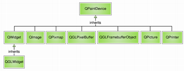 The QPaintDevice class is the base class of objects that can be painted, i.e. QPainter can draw on any QPaintDevice subclass. QPaintDevice's drawing capabilities are currently implemented by the QWidget, QImage, QPixmap, QGLWidget, QGLPixelBuffer, QPicture and QPrinter subclasses.
